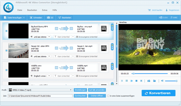 MP4 Nebeneinander 3D, MP4 Oben/Unten 3D, MP4 Anaglyph 3D, MKV Nebeneinander 3D, MKV Oben/Unten 3D, MKV Anaglyph 3D, TS Nebeneinander 3D, TS Oben/Unten 3D, TS Anaglyph 3D, AVI Nebeneinander 3D, AVI Oben/Unten 3D, AVI Anaglyph 3D, FLV Nebeneinander 3D, FLV Oben/Unten 3D, FLV Anaglyph 3D |