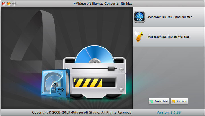 4Videsoft Blu-ray Converter für Mac ist der beste Converter für Mac Benutzer, mit dem Sie hausgemachte Blu-ray zu allen Video Formaten, einschließlich HD Video, konvertieren. Außerdem können Sie Blu-ray zu Ihren tragbaren Geräten wie iPad, iPhone, PSP usw. leicht für Backup oder Wiedergabe übertragen.