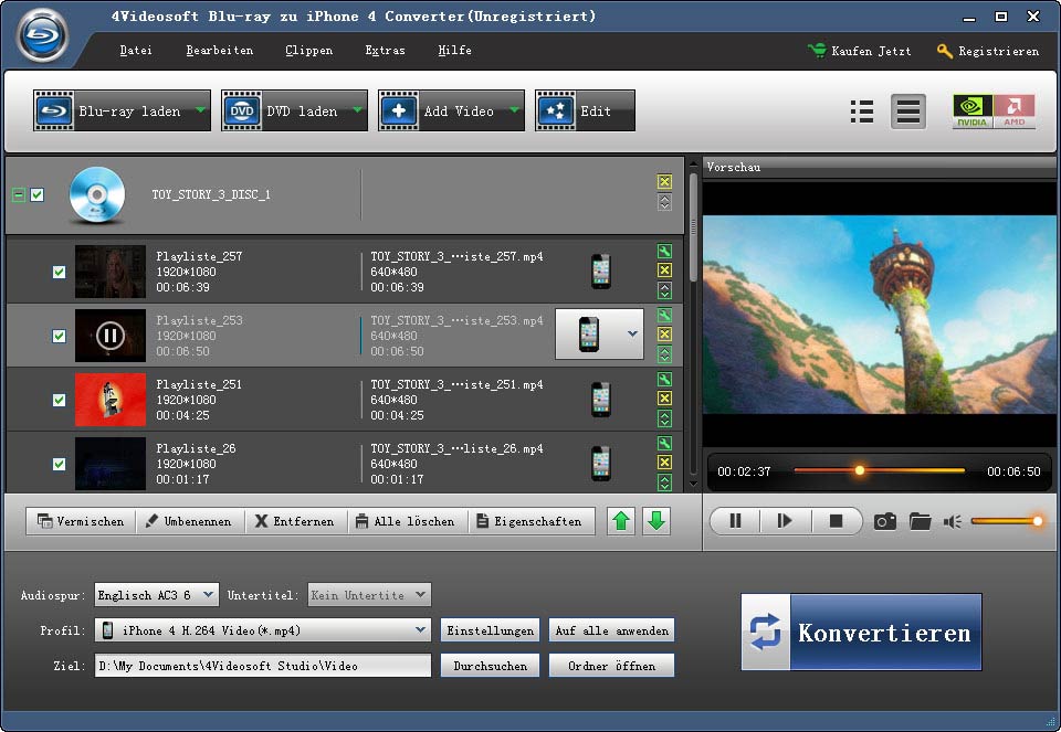 - Blu-ray zu iPhone 4 Converter ist sehr leicht zu verwenden. Mit weniger Klicks können Sie die Umwandlung erledigen.