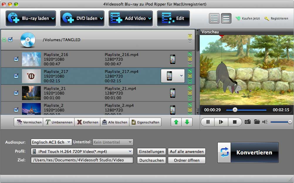 - Dieser Mac Blu-ray zu iPod Ripper kann auch Videodateien zu iPod auf Mac konvertieren.