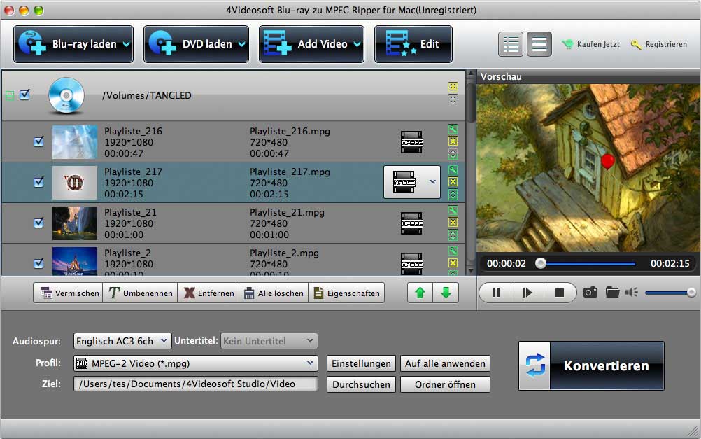 - Mit Blu-ray zu MPEG Ripper für Mac können Sie Blu-ray, DVD und Video Datei zu MPEG und anderen erwünschten Video Formaten auf Mac konvertieren.