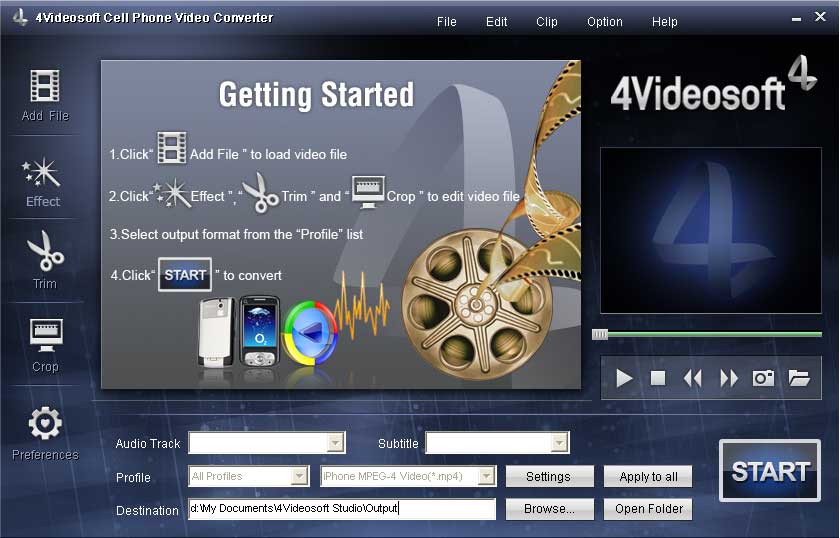 Handy Video Converter billigt Ihnen, Video zu croppen und Videoformat der Ausgabe einzustellen, um die perfekte Spieleffekte zu erhalten.
