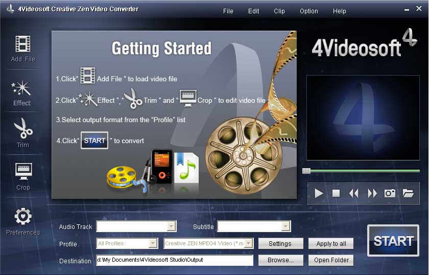- Creative Zen Video Converter verfügt über starke Rippen- und Bearbeitungsfunktionen.