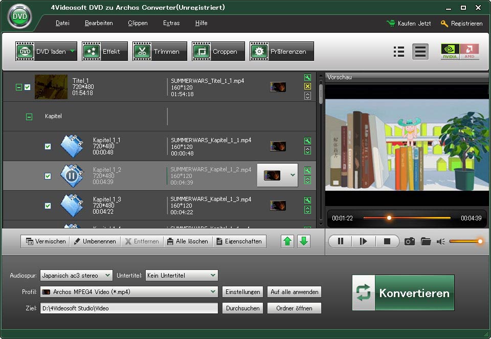 Konvertieren DVD in verschiedene Videos oder Audio für Archos gleichzeitig.