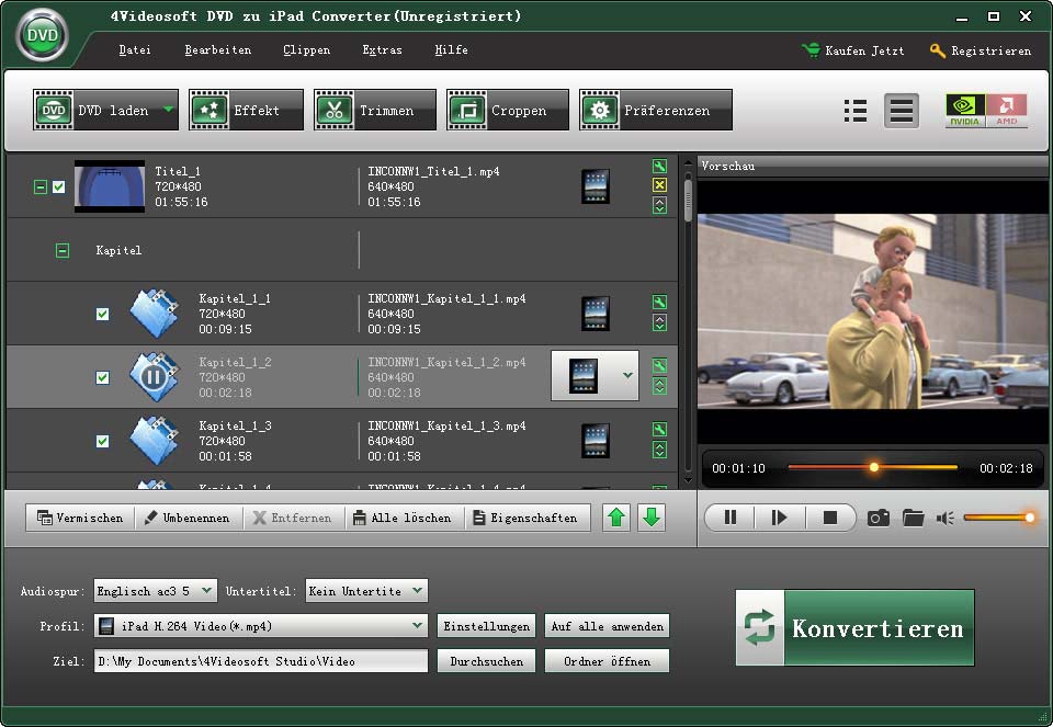 - Konvertierung DVD zu iPad MP4 und Audioformaten
