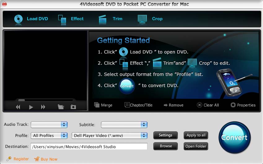 - DVD zu Pocket PC Converter für Mac besitzt starke Konvertierungs- und Bearbeitungsfunktion.