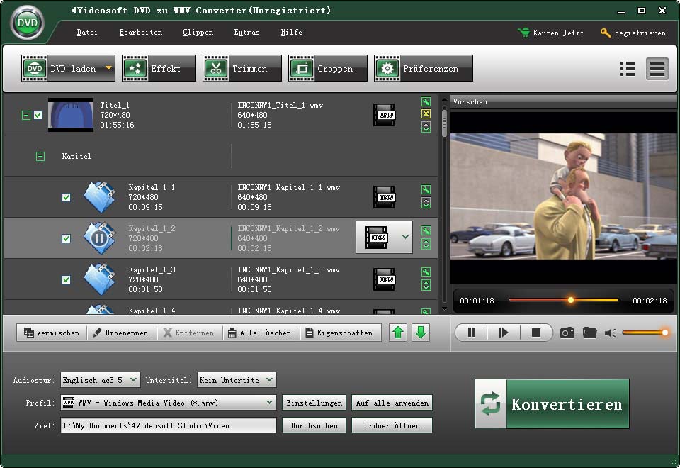 - DVD zu WMV Converter besitzt starke Rippen- und Bearbeitungsfunktionen.