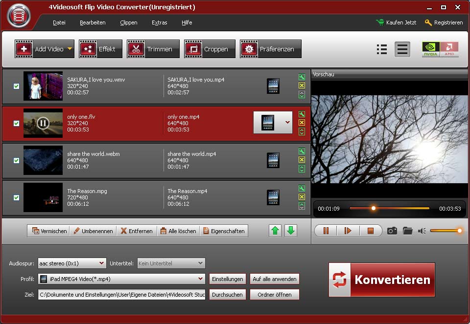 - Wenn Sie diesen Converter kaufen, können Sie kostenfrei Flip Video Converter für das ganze Leben aktualisieren.