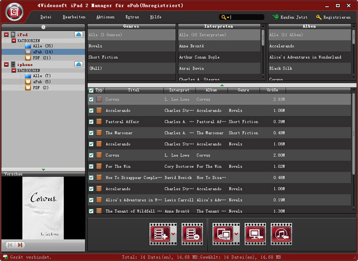 - Dieser iPad 2 ePub Manager bietet Ihnen überraschende hohe Geschwindigkeit, wenn Sie ePub Dateien zu Ihrem iPad 2 übertragen.