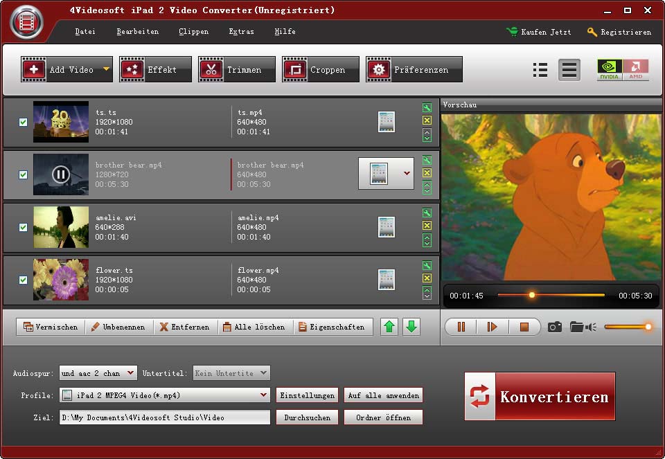 - iPad 2 Video Converter ist wirklich mit schnellster Konvertierungsgeschwindigkeit einfach zu benützen.