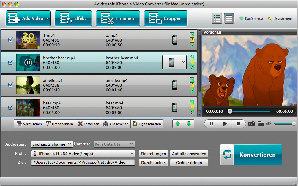 - Alle Video Formate zu iPhone 4 MP4, H.264 auf Mac konvertieren