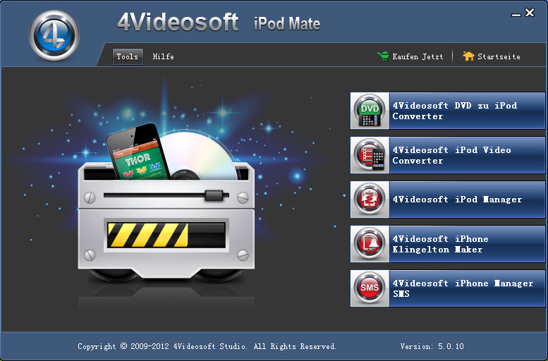 Es gibt vier iPod Softwaren in iPod Mate: iPod Manager, DVD zu iPod Converter, iPod Video Converter, und iPhone Klingelton Maker. Diese reduzierte iPod Mate bietet Flexibilität DVD zu den von iPod unterstützten Formaten zu rippen und alle Videos (SD, HD Videos) zu MP4, H.264/MPEG-4 AVC(.mp4) oder MOV für Ihre iPod, iPod touch, iPod nano sowie iPod classic zu konvertieren. Der iPod Manager im iPod Mate hat die Funktion Datei zwischen verschiedenen iPod zu verwalten, Videos/Audios von iPod zu PC oder umgekehrt zu verwalten. iPod Mate bietet Ihnen auch die Möglichkeit, iPhone Klingelton zu erstellen.