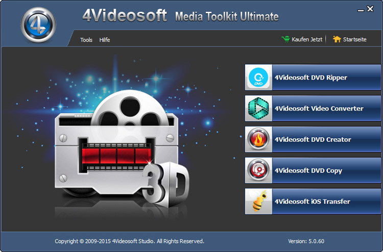 Das Media Toolkit Ultimate bietet Ihnen ein bestes Paket von DVD Ripper, Video Converter, DVD Creator, DVD Copy und iOS Transfer. Mit diesem Softwarepaket können Sie alle DVD und Video Dateien leicht in andere Video und Audio Formate umwandeln, Sie können damit auch Dateien (Videos, Musik, Fotos usw.) zwischen iPod/iPhone/iPad und Computer übertragen und iPhone Klingelton für alle Versionen der iPhone Geräte erstellen. Nicht zuletzt hat dies Media Toolkit Ultimate die Fähigkeit, DVD zu kopieren und alle Video in DVD Disk/DVD Ordner/ISO Datei zu brennen.