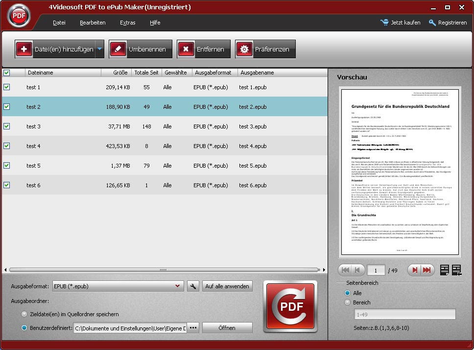 - Der PDF to ePub Converter ermöglicht es Ihnen, mehrere PDF-Dateien hinzuzufügen und sie in verschiedene ePub Dateien durch einen Klick umzuwandeln.