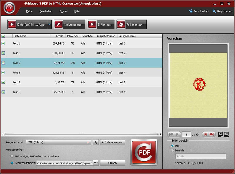 - Dieses PDF to HTML Converter können Sie die Ausgabe Seite(n) und Seite Adressenbereich(e) auswählen. Sie können alle PDF-Seiten oder bestimmte Sportarten konvertieren.