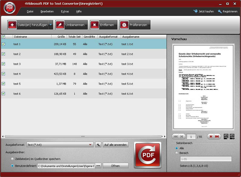 Der PDF to Text Converter unterstützt Umwandlung der mehrsprachigen PDF mit hoher Qualität. Sie können die zu konvertierende Seite(n), Textkodierung einstellen und Ausgabesprachen wählen, um die Ausgabe-Textdatei genau zu machen.
