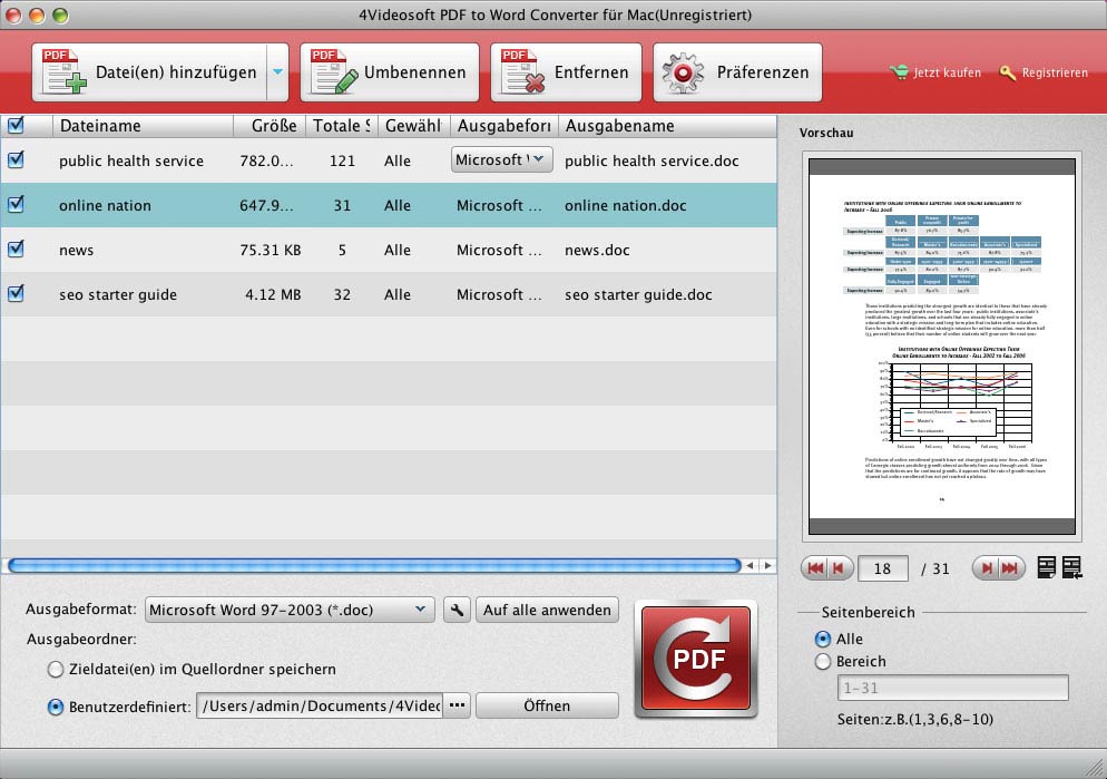 - PDF to Word Converter für Mac bietet Nutzern die Stapelumwandlung-Funktion, mit seiner initutiven Schnittstelle werden die Umwandlung nur durch einige Klicks beendet.